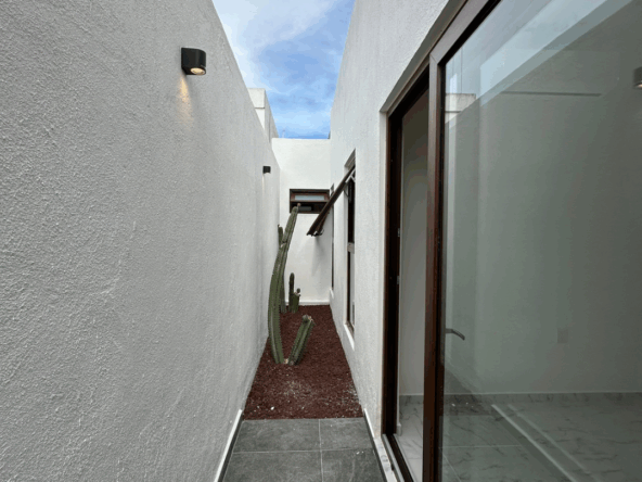 Esta casa en venta en Veracruz está ubicada en el Cluster Puerta de Alcalá, un desarrollo residencial con cancelería PVC color nogal, que ofrece un diseño funcional y moderno en un solo nivel. Ideal para familias que buscan casas en venta en Lomas de la Rioja con seguridad, confort y eficiencia energética.