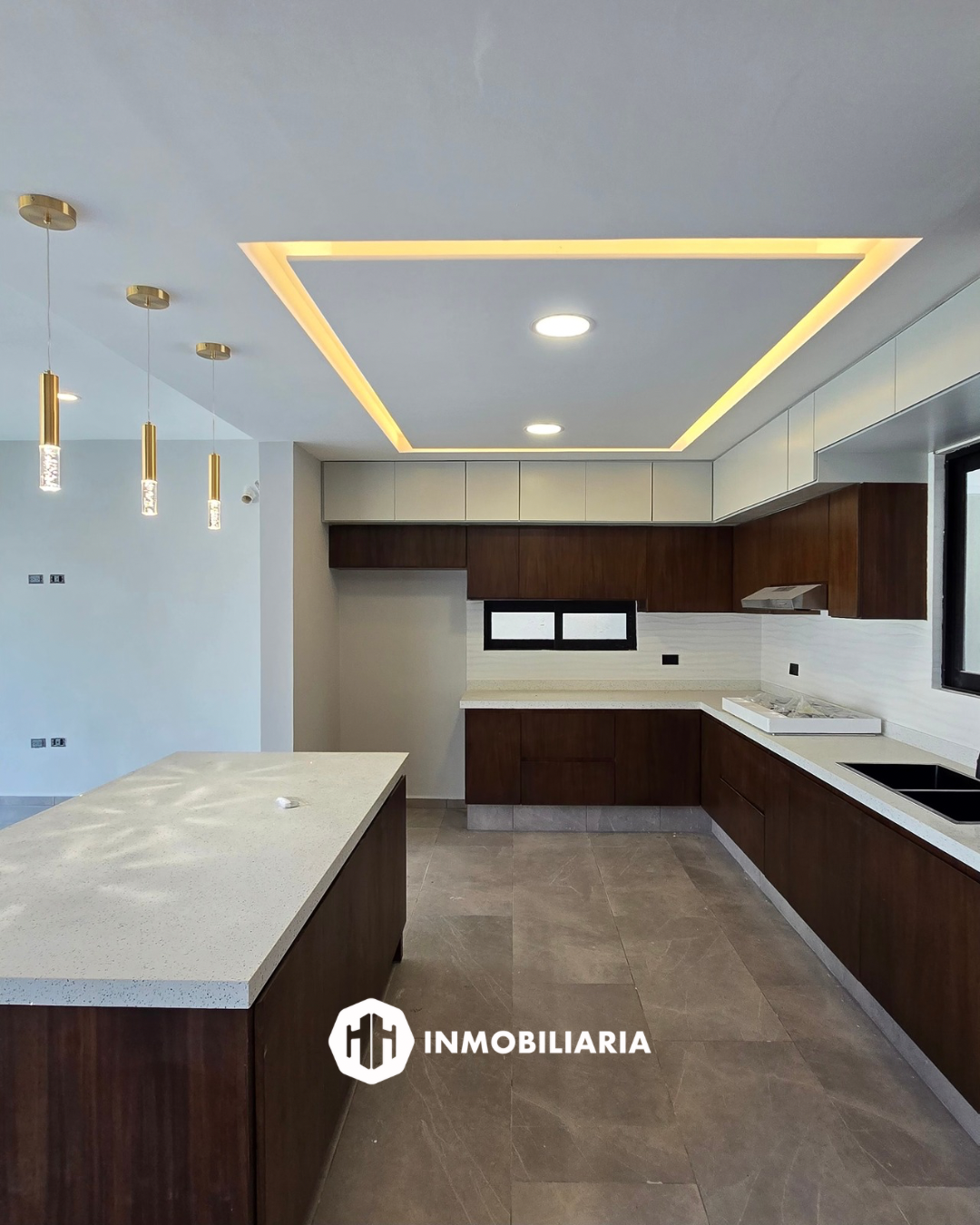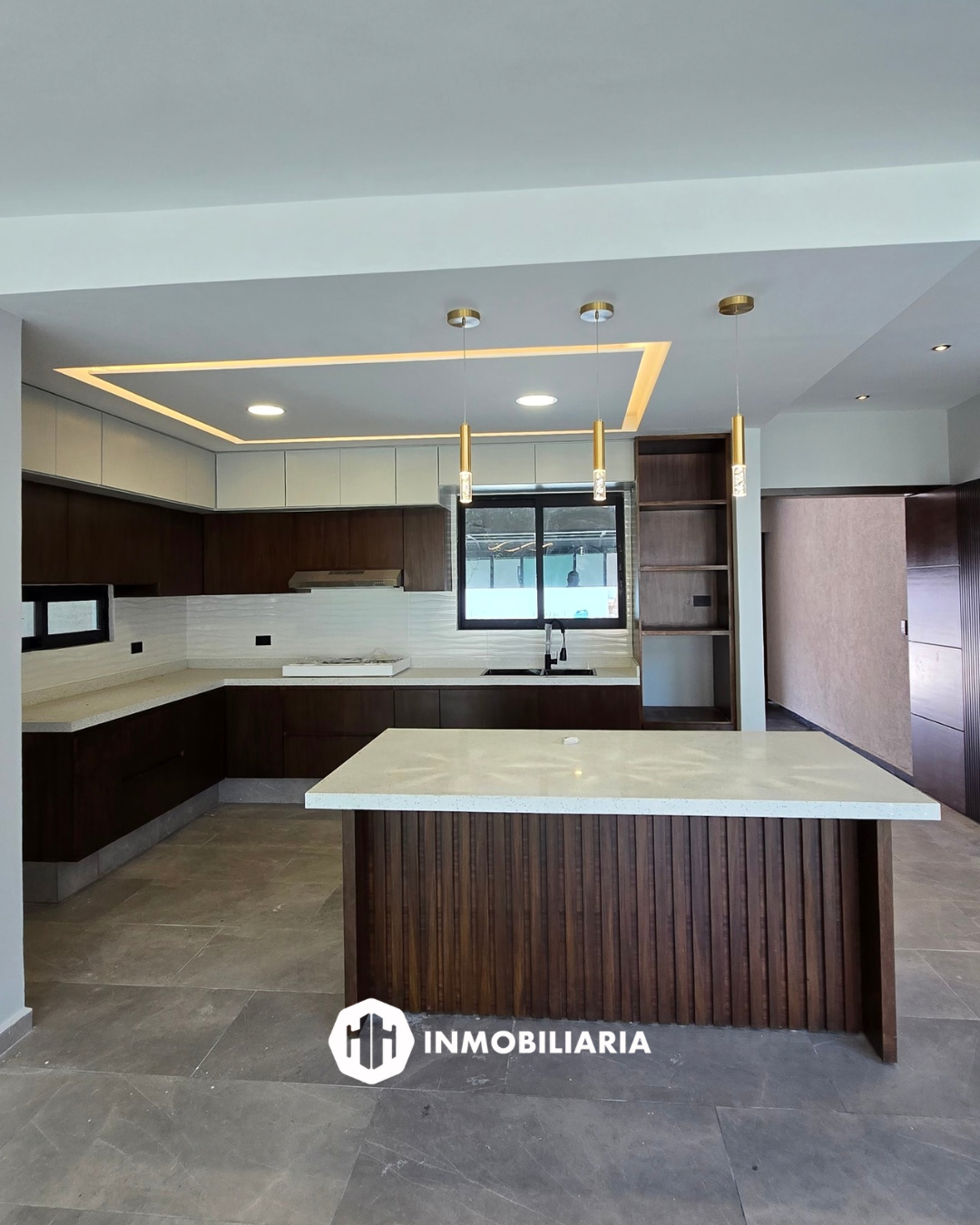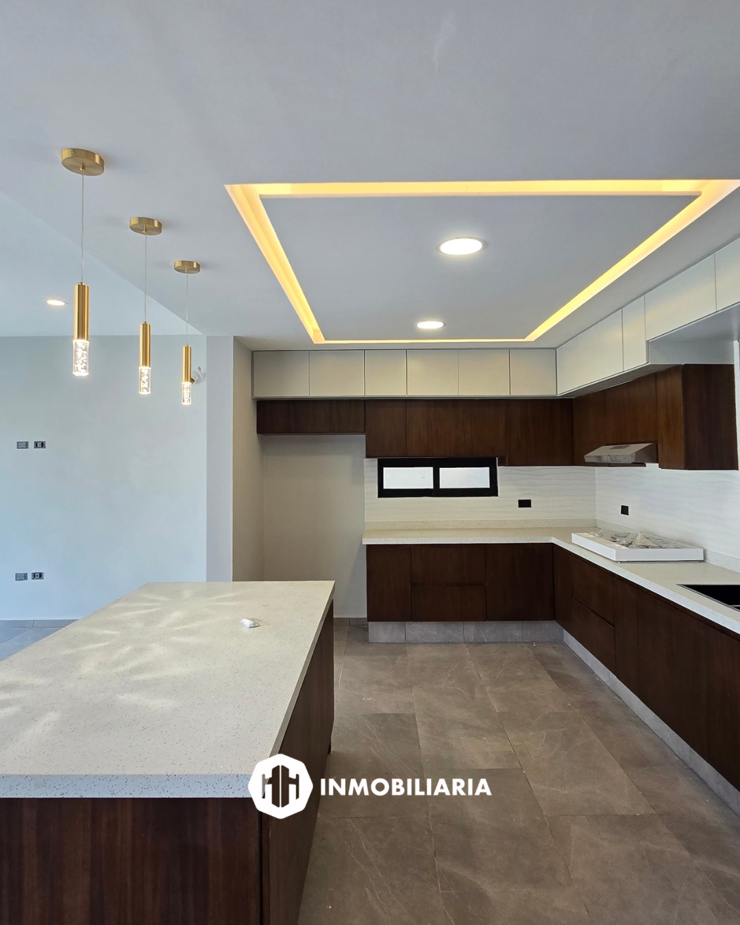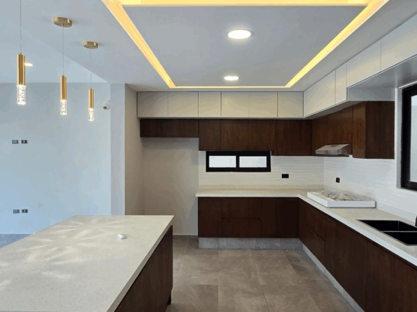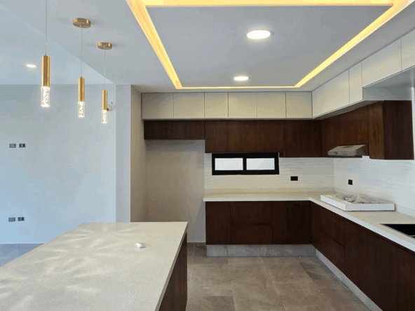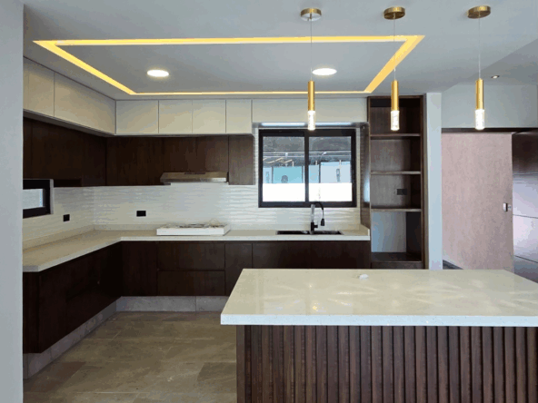 Cocina integral con barra de cuarzo