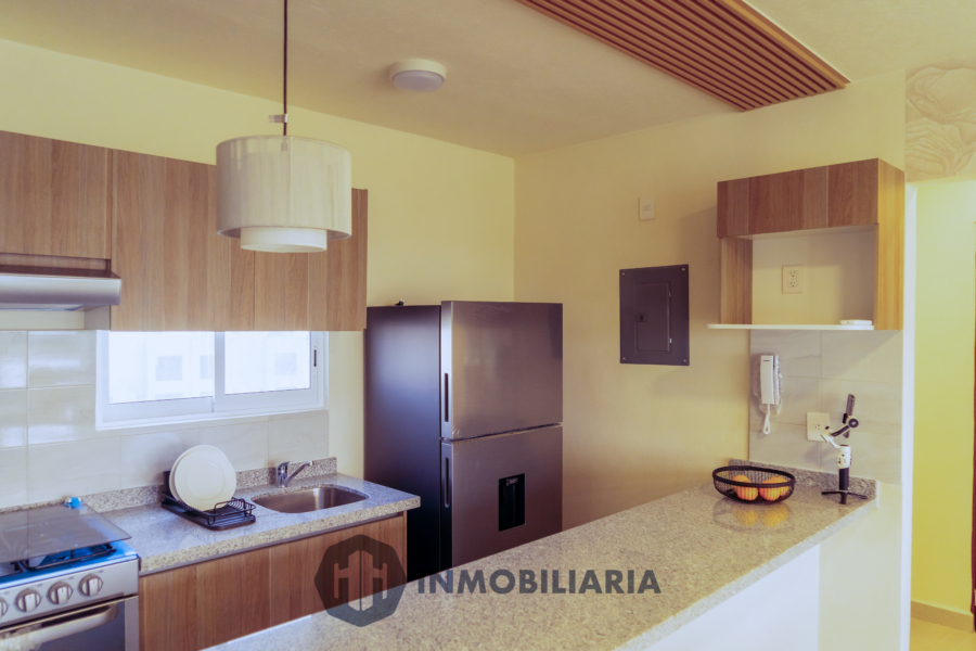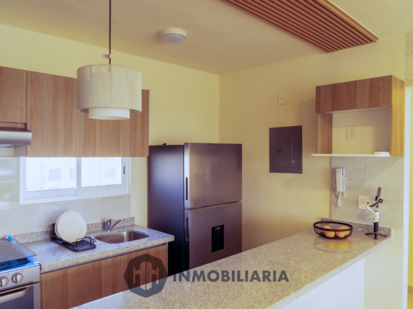 - Acabados de lujo: Piso de loseta cerámica, cocina integral con barra de granito, estufa y campana, closets-vestidor y canceles de baño de alta calidad.